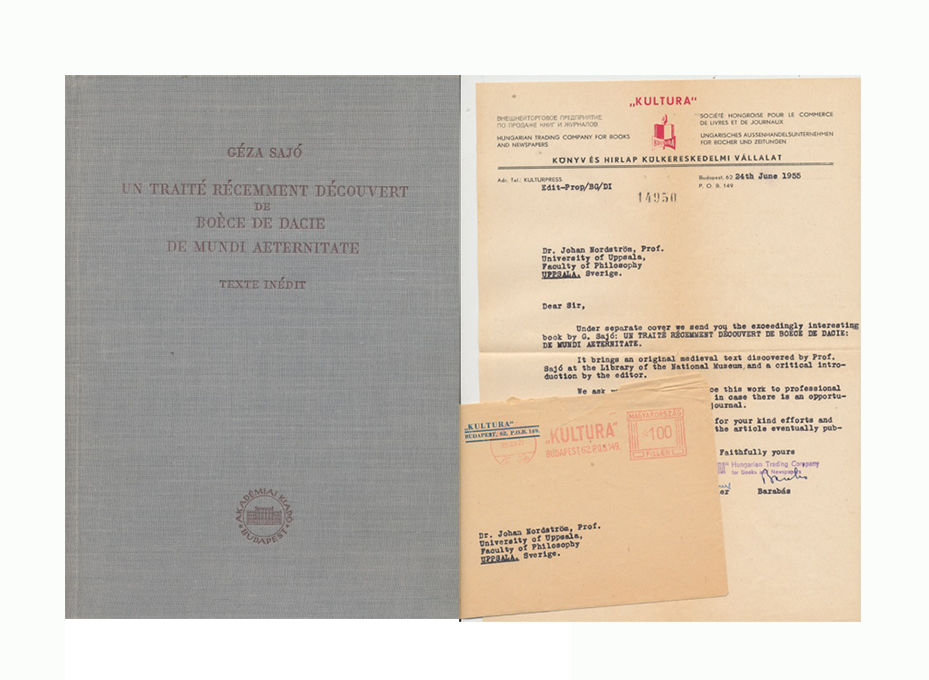 Budapest, 1954. 148,(1,1 blank,1) s. & 1 utvikbar faksimil. Oklbd. Två bilagda brev, dels från författaren, dels från förläggaren, till professor Johan Nordström. Ur Arne Losmans bibliotek.