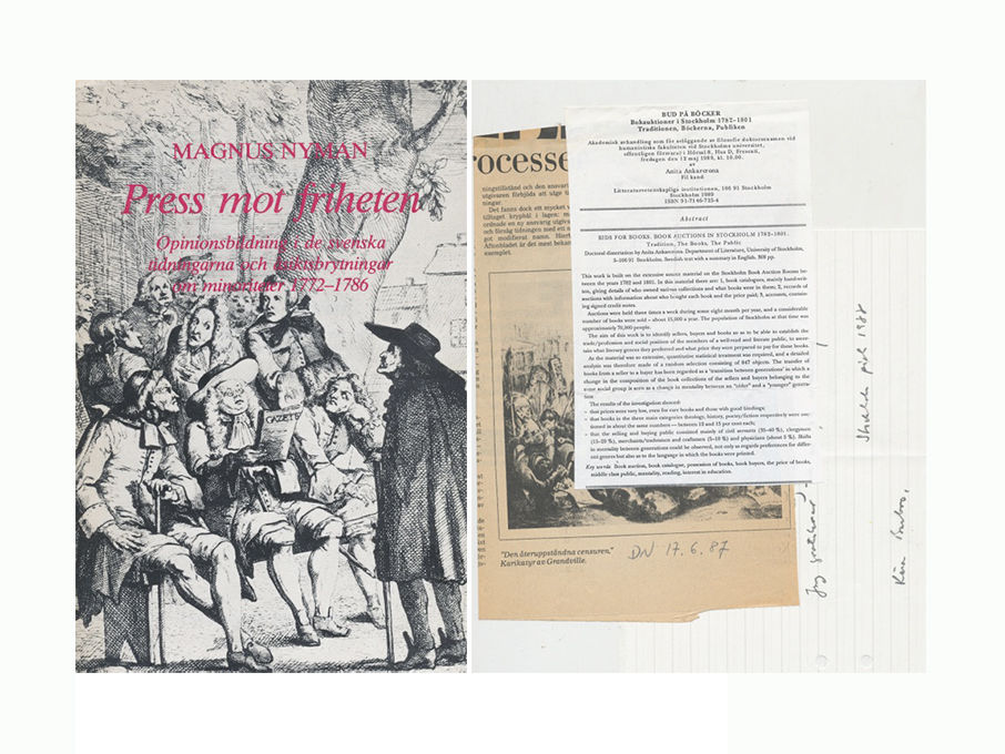 Uppsala, 1988. 297 s. Häftad, med skyddsomslag. Dedikation, ”vänl. förf.”, på serietitelbladet. Ur Arne Losmans bibliotek. Med bilagt tackbrevskoncept, daterat Stockholm påsk 1988.