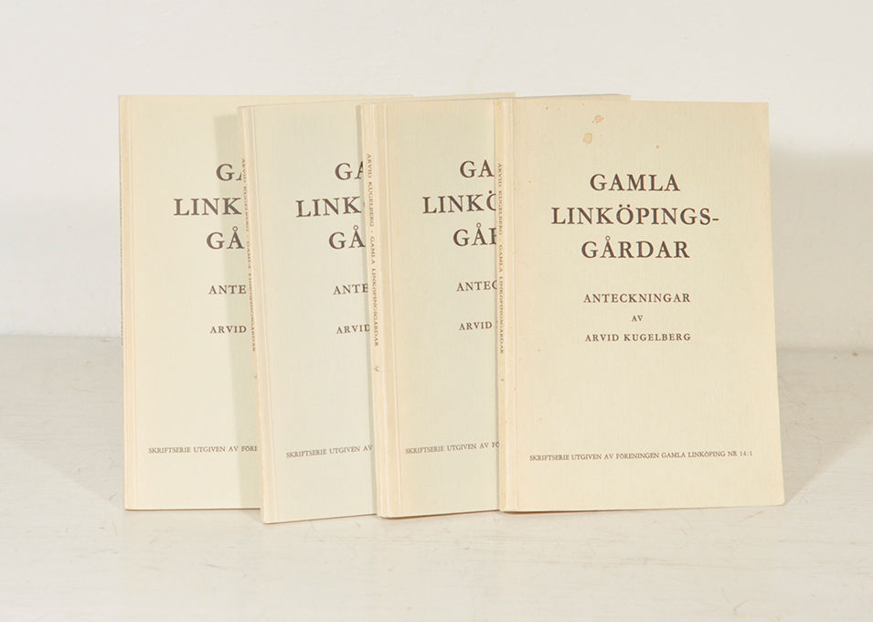 Skriftserie utgiven av Föreningen gamla Linköping 14:1-4. Redigerad och utgiven av Bengt Lundberg. Arvid Kugelberg (1880-1966) utgav första upplagan av verket i två volymer åren 1943-49 och planerade en ny upplaga, men hann inte färdigställa denna. Med omfattande register över gårds-, gatu- och personnamn.
