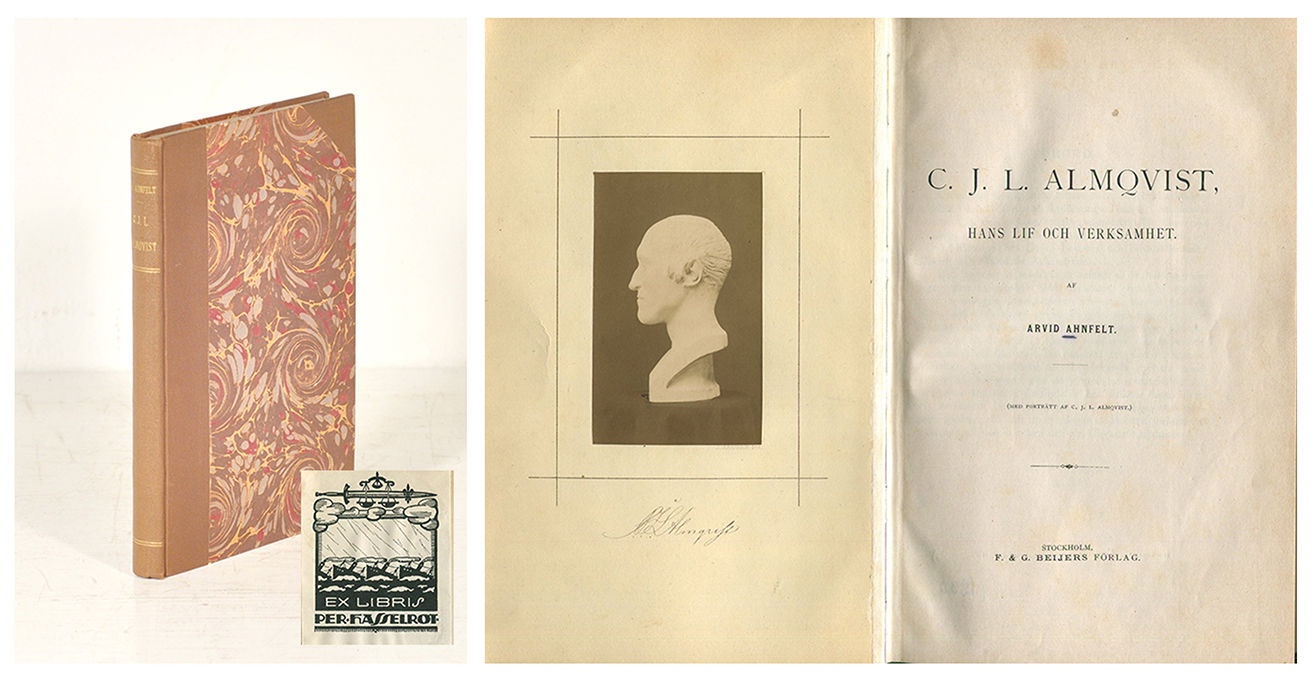 Porträttet är ett inklistrat originalfotografi av J. Jaeger efter en byst föreställande författaren. Utdrag ur arbetet hade presenterats, dels i en serie föreläsningar under hösten 1875, dels som uppsatser i ”Ny illustrerad tidning” 1876, nr 1 och 2 samt i tidskriften ”Det nittende århundrede”. Ahnfelt hade 1869 doktorerat på ”C. J. L. Almqvist såsom nyromantiker”. Den medbundna tidningsartikeln har rubriken ”C. J. L. Almqvist och hans förmenta sekreterarebefattning hos president Lincoln”.