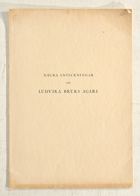 Utgiven i 200 numrerade exemplar, varav detta är nummer 126. Anteckningar nedskrivna i samband med en festskrift från vänner, tillägnad häradshövding Carl Roth på Ludvika bruk på hans 60-årsdag. Bland de tidigare ägarna märks kronan, Axel Lillie, Jacob och David Leijel, släkten Cedercreutz i flera generationer, Anders Wetterdahl och sedan släkten Roth i flera generationer.