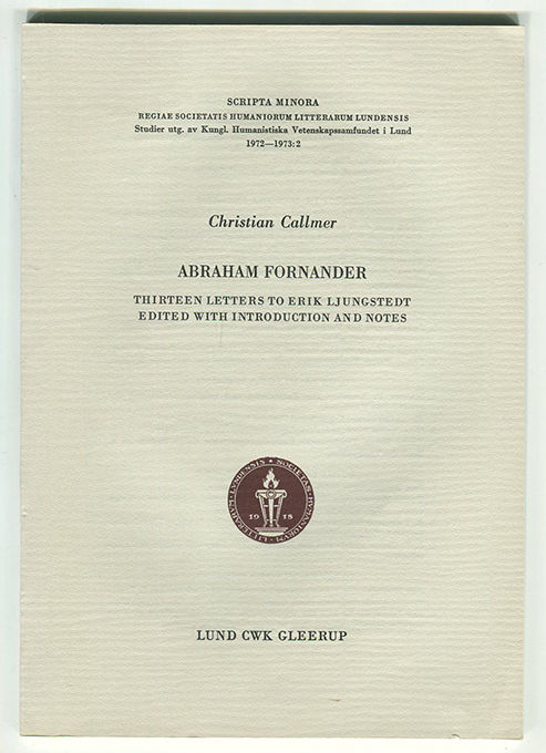 Scripta minora Regiae societatis humaniorum literarum Lundensis. Studier utgivna av kungl. Humanistiska vetenskapsamfundet i Lund 1972-1973:2. Abraham Fornander (1812-87) studerade teologi och klassiska språk, först i Uppsala och senare i Lund, men avbröt studierna för att gå till sjöss i närmare tio år, varefter han bosatte sig på Hawaii, där han bland annat ägnade sig åt att ge ut tidningar, men även hade flera officiella uppdrag. 1878-85 utkom hans lingvistiska och etnografiska verk ”An Account of the Polynesian Race, Its Origins and Migration and the Ancient History of the Hawaiian People to the Times of Kamehamea” i tre volymer, tryckta i London. Erik Christian Ljungstedt (1811-1901) var Fornanders barndomsvän från Öland, jurist och ämbetsman.