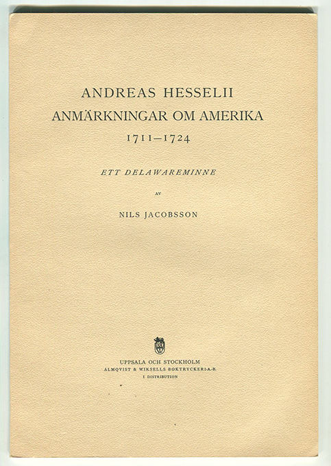 Andreas Hesselii anmärkningar om Amerika 1711-1724. Ett Delawareminne. Särtryck ur Svenska Linnésällskapets årsskrift XXI, 1938.