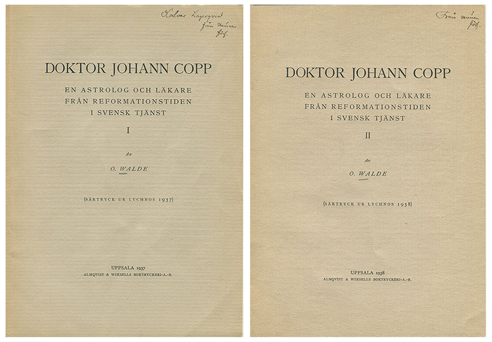 Doktor Johann Copp. En astrolog och läkare från reformationstiden i svensk tjänst. I-II. Särtryck ur Lychnos.