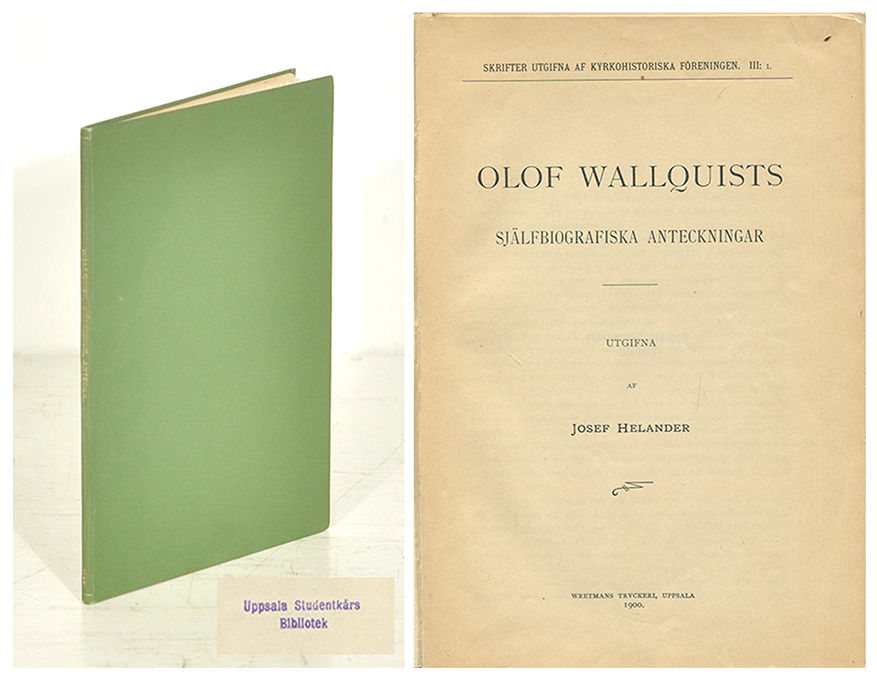 Skrifter utgifna af Kyrkohistoriska föreningen III:1. Självbiografin är skriven fram till 1787 då Olof Wallquist (1755-1800) utsågs till biskop i Växjö. Han var även biktfader till Gustav III och dog av ett slaganfall efter en häftig debatt under riksdagen i Norrköping 1800.