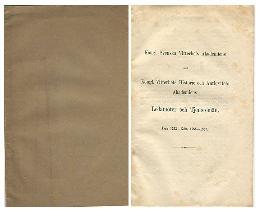 Kongl. svenska Vitterhets akademiens samt kongl. Vitterhets historie och antiqvitets akademiens ledamöter och tjenstemän åren 1753-1782; 1786-1867.