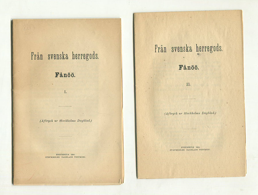Från svenska herregods. Fånöö. (Aftryck ur Stockholms dagblad). I-II.