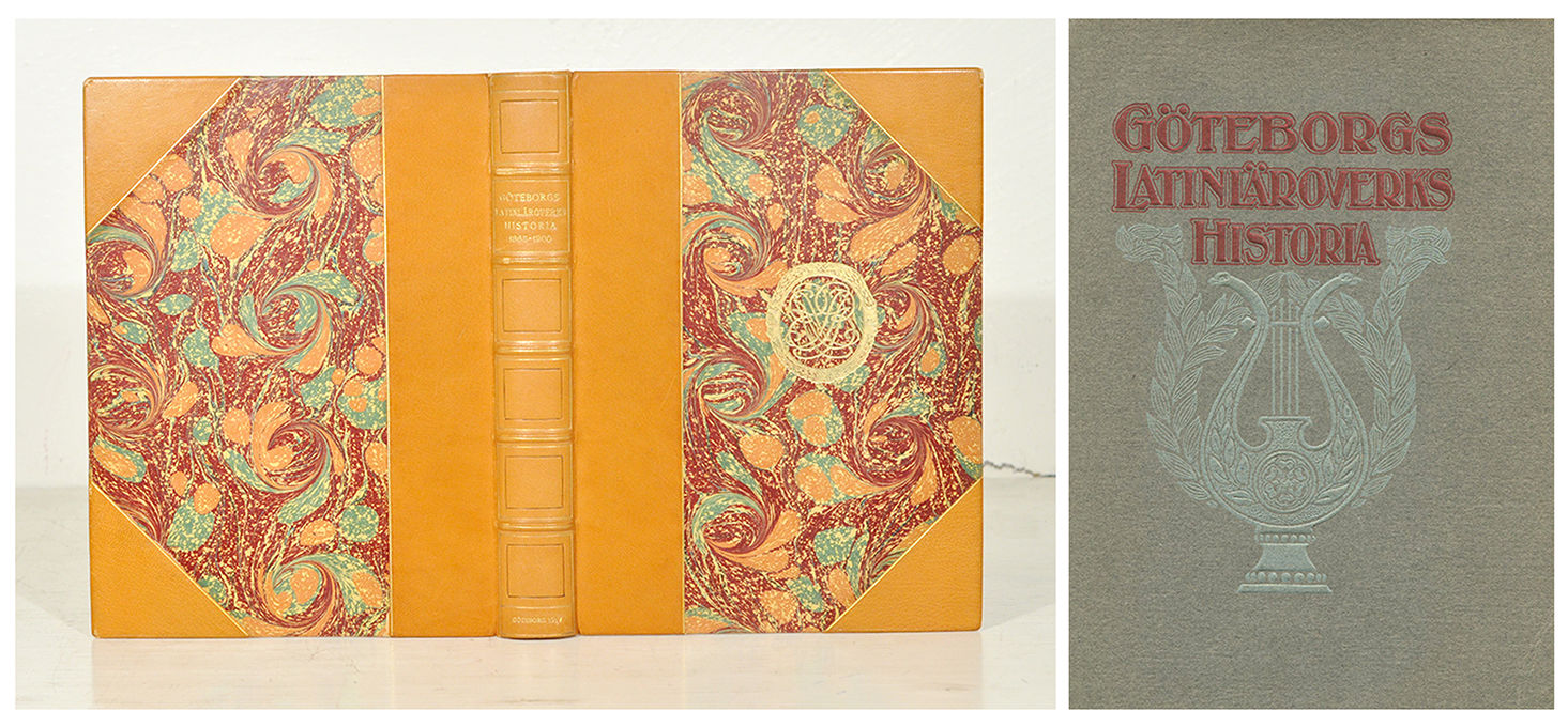 Göteborg, 1917. 523,(1) s. Elegant ljusbrunt halvmarokängbd med upphöjda bind, blind- och guldornerad rygg, marmorerade pärmpapper samt övre guldsnitt, övriga endast putsade (Hedberg, 1930). Medbundet omslag. Ytliga skrapmärken på de två övre upphöjda binden och längs bakre ytterfalsen. Med Gustaf Bernströms guldpressade pärmexlibris.