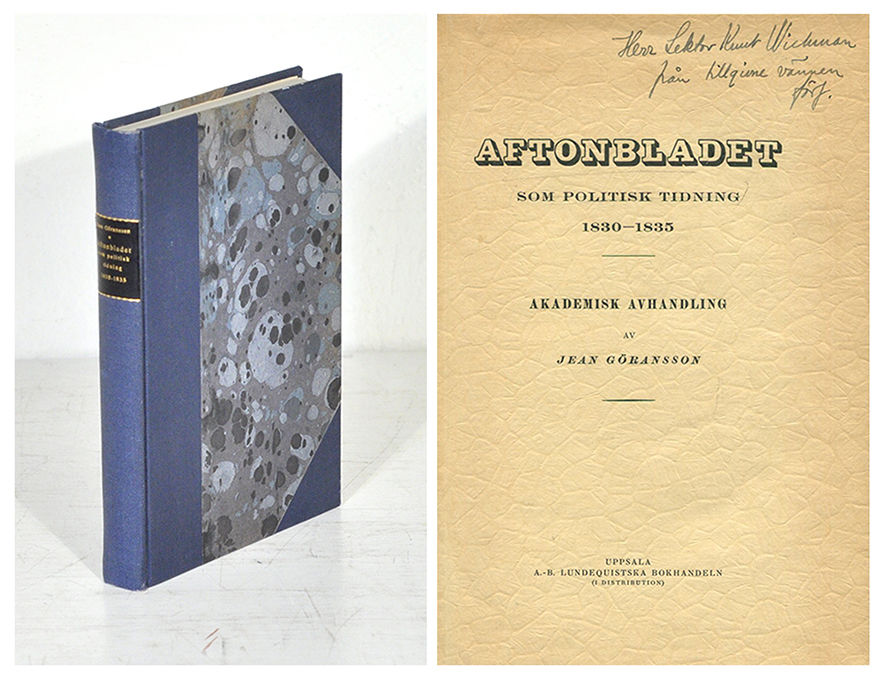 Uppsala, 1937. XVII,(1),320 s. Blått hklbd med svart titeletikett (Nils Linde). Främre omslaget medbundet. Inlagan delvis med marginalanteckningar i blyerts. Med Knut Wichmans namnteckning och dedikation till densamme.