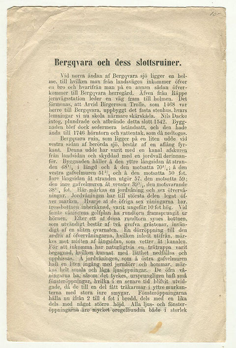 Växjö, E. Ljungströms arfvingar, 1870. (2) s. Ett blad med några småveck i övre hörnet och en liten fläck i nedre marginalen.