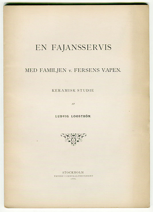 En fajansservis med familjen v. Fersens vapen. Keramisk studie. [Särtryck ur Svenska slöjdföreningens meddelanden 1886].