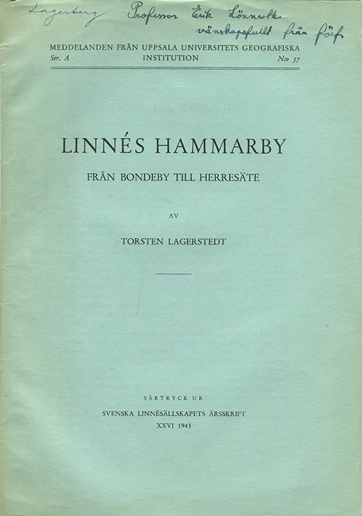 Linnés Hammarby. Från bondeby till herresäte. Särtryck ur Svenska Linné-sällskapets årsskrift, XXVI, 1943.