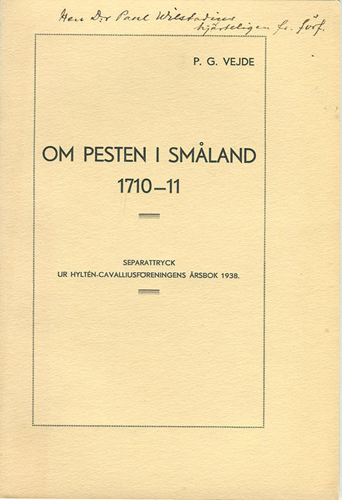 Om pesten i Småland 1710-11. Separattryck ur Hyltén-Cavalliusföreningens årsbok 1938.