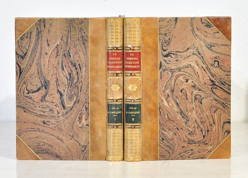 Sthlm, 1914. Porträtt,217 + 236 s. Två eleganta men ganska nötta marmorerade hfrbd med upphöjda infärgade bind, guldornerade ryggar och dubbla röda respektive gröna titeletiketter samt marmorerade snitt (Hedberg). De främre omslagen medbundna. Den första volymen med spricka i främre ytterfalsen.