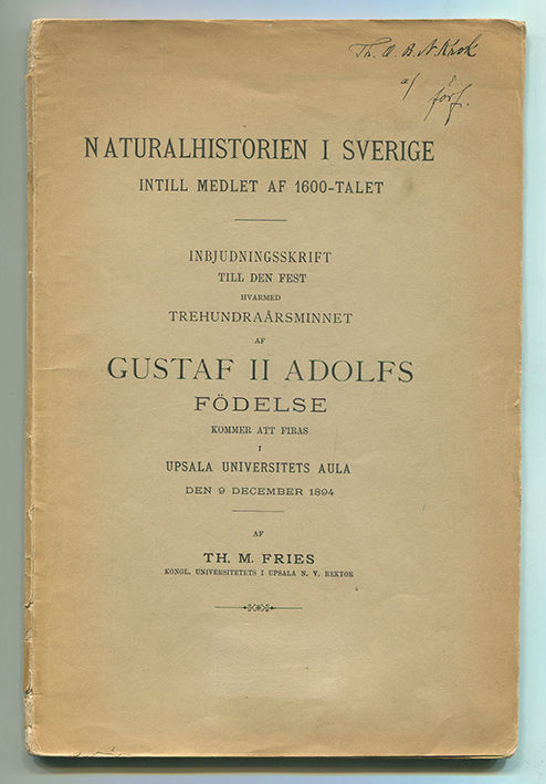 Naturalhistorien i Sverige intill medlet af 1600-talet. Inbjudningsskrift till den fest hvarmed trehundraårsminnet af Gustaf II Adolfs födelse kommer att firas i Upsala universitets aula den 9 december 1894.