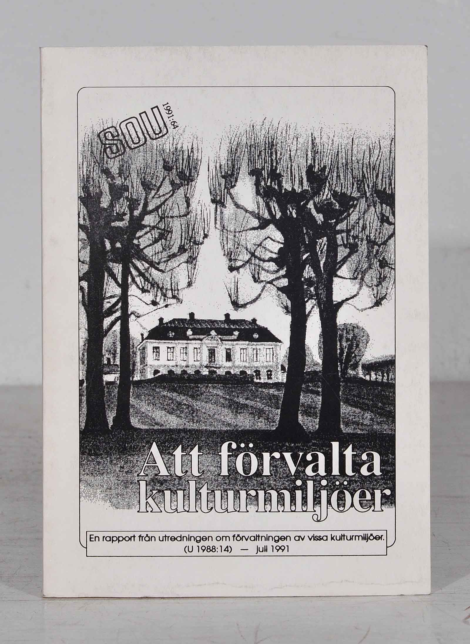 Statens offentliga utredningar SOU 1991:64. Från Utbildningsdepartementet. Till utredningen, som främst inriktar sig på herrgårdar och industriminnen, bidrog Bill Fransson, Tomas Keisu, Christian Laine, Bo Riddarström, Keith Wikander, Carin Bunte, Siv Milton, Sten Söderberg, Thomas Nordling, Ingrid Klering, Magnus Bohlin, Barbro Mellander, Marie Nisser och Per Ragnarsson.