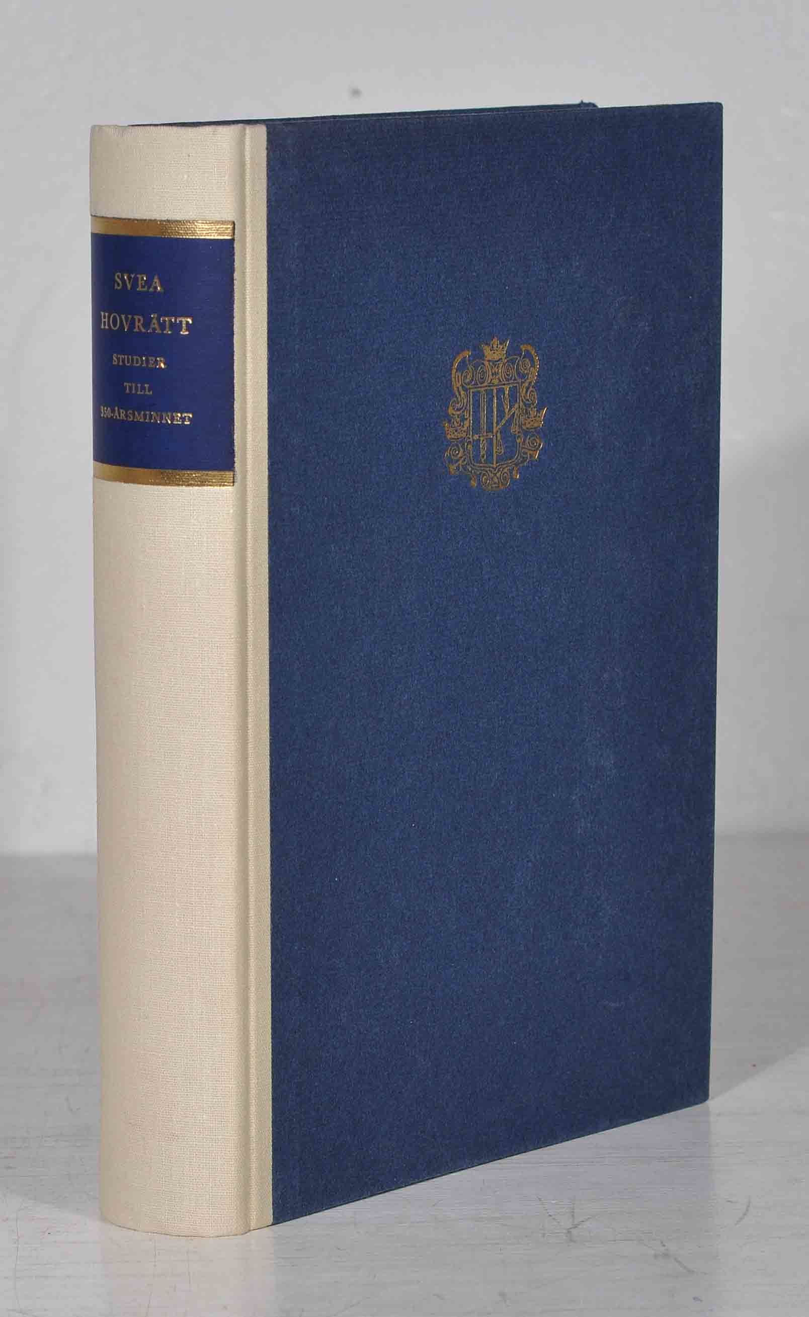 Sthlm, 1964. VIII,409 s. & plr & 1 löst bifogad tryckt rättelselapp. Vitt oklotryggbd med blå titeletikett och blå pärmpapper där Svea hovrätts guldpräglade emblem återfinns på frampärmen. Pärmarna lätt solkiga. Namnteckning i blyerts på försättsbladet: ”G. Åkerman”.