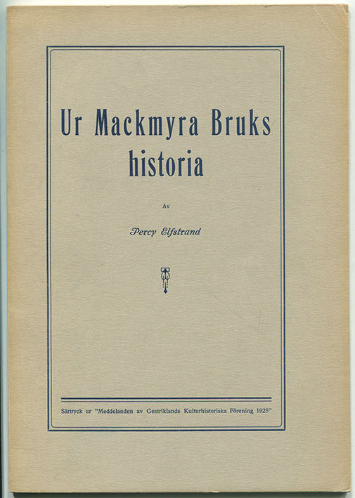 Ur Mackmyra bruks historia. Särtryck ur Meddelanden av Gestriklands kulturhistoriska förening 1925.