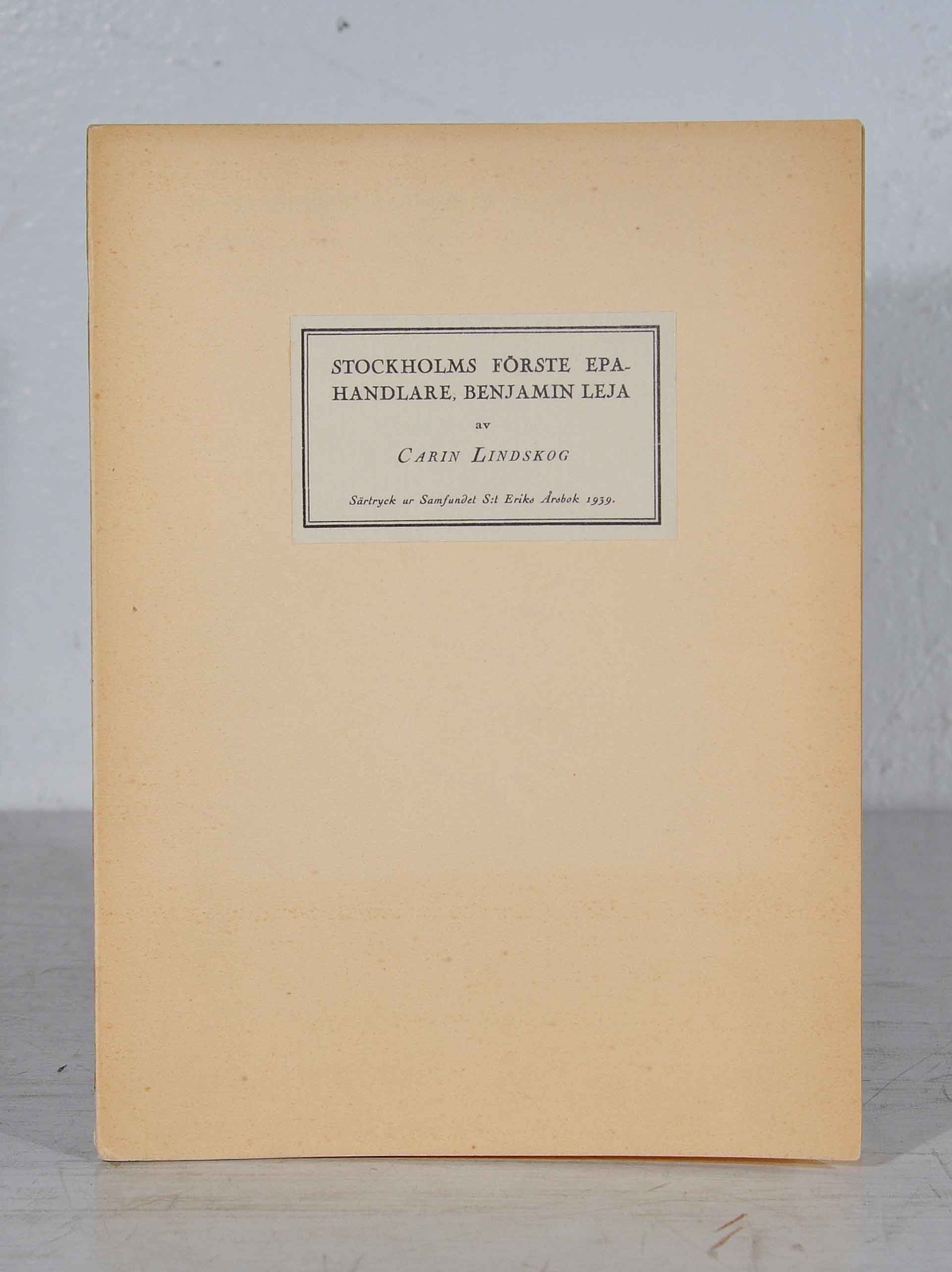 Stockholms förste EPA-handlare, Benjamin Leja. Särtryck ur Samfundet S:t Eriks årsbok 1939.