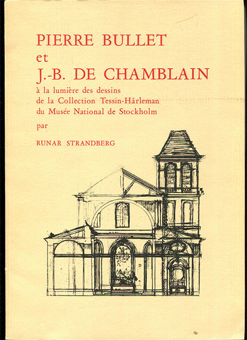 Illustrerad. Rör arkitekterna Pierre Bullet (1639-1716) och J. B. de Chamblain (1665-1726) och de ritningar av dem som finns i Nationalmuseums samlingar. Innehåller: ”Preface”, ”Les conceptions architecturales de Pierre Bullet et de J.-B. de Chamblain”, ”Jean-Baptiste Bullet de Chamblain architecte du roi (1665-1726)”, ”Les dessins d’architecture de Pierre Bullet: Les dessins d’architecture pour la Place Vendôme et l’hôtel Reich de Pennautier-d’Evreux”, ”Pierre Bullet et les problèmes que soulèvent l’Eglise des soldats et le Dôme des invalides”, ”Les projets d’autel conçus par Pierre Bullet pour Saint-Germain-des-Prés conservés à Stockholm”, ”La Porte royale de la Rochelle” och ”Index alphabétique”.