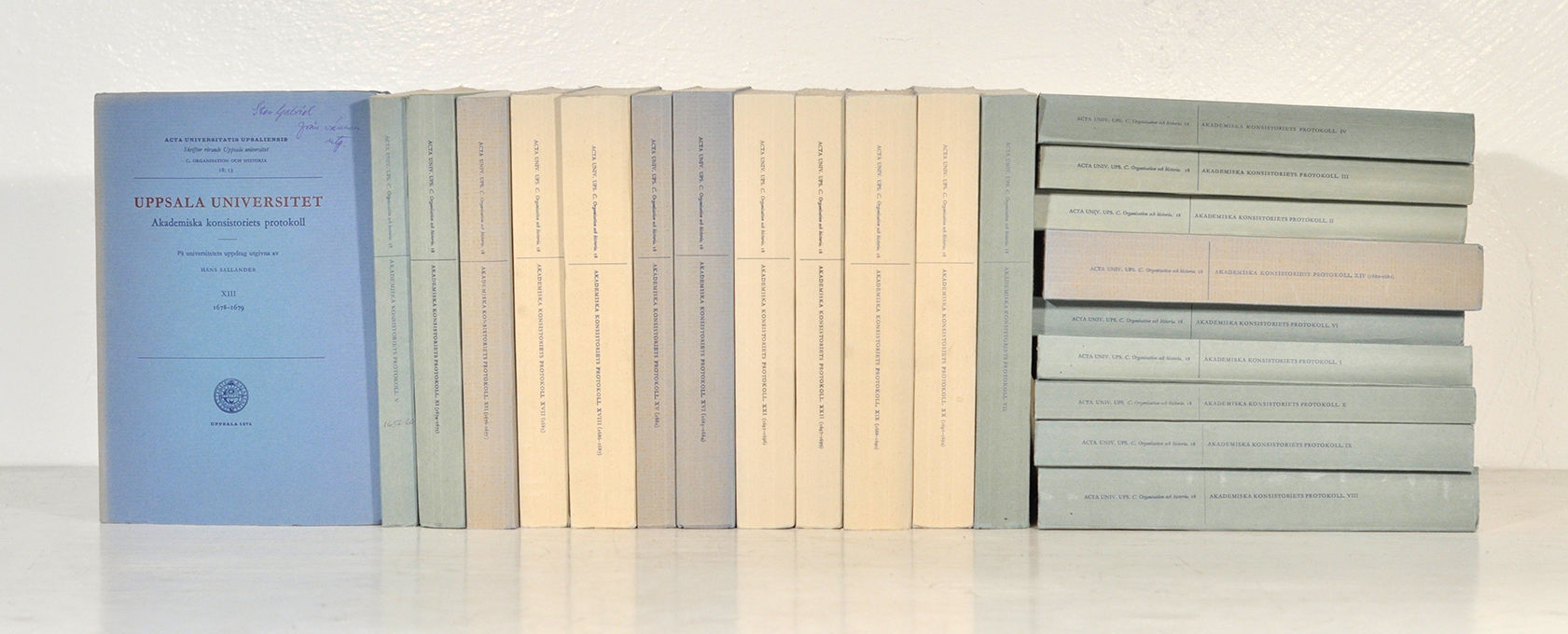 Uppsala universitet. Akademiska konsistoriets protokoll. På universitetets uppdrag utgivna av Hans Sallander. I-XXII.
