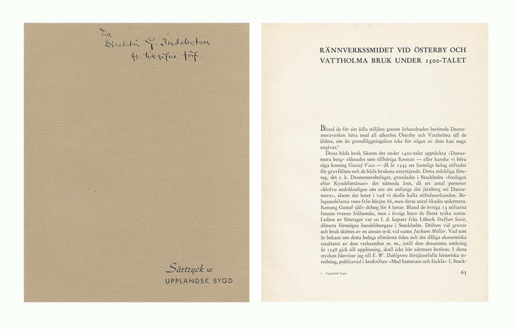 Sthlm, 1940. s. 65-74. Klammerhäftad. Med dedikation till Govert Indebetou.