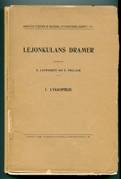 Lejonkulans dramer efter Löberödshandskriften utgivna av Evald Ljunggren, Camille Polack och Erik Noreen. Häfte I-VII.