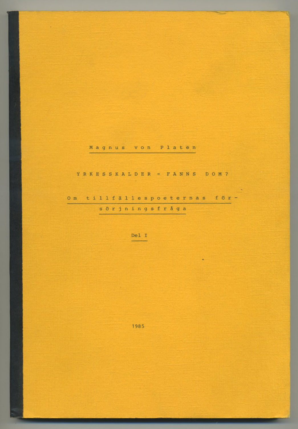 (Umeå), 1985. (2),V-VIII,186 s. & 1 tryckt tabell. Häftad med ursprunglig svart plastremsa i ryggen. Med dedikation: ”Till Gösta Berg med tack för många inspirerande samtal från vännen förf.”