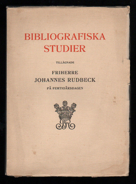 Bibliografiska studier tillägnade friherre Johannes Rudbeck på hans femtioårsdag den 7 mars 1917.