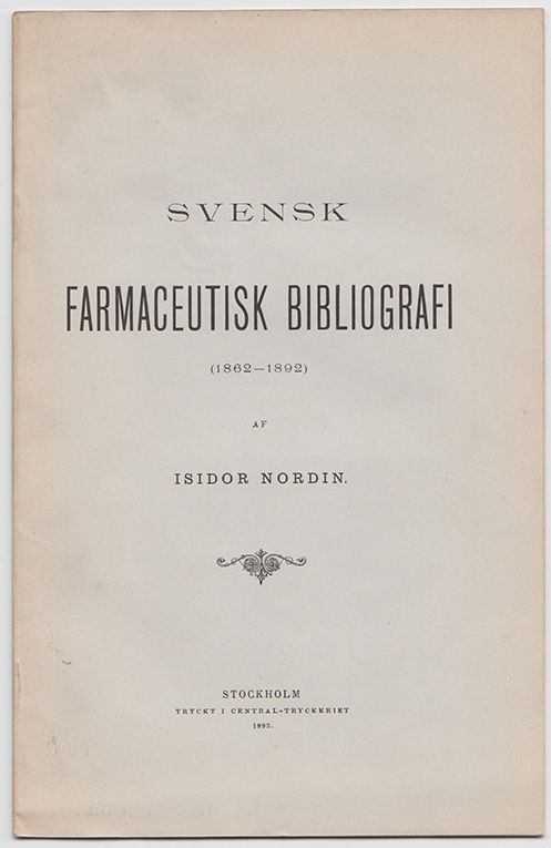 Svensk farmaceutisk bibliografi (1862-1892). Fortsättning af d:r m.m. N. P. Hambergs uppsats i samma ämne. (Aftryck ur Pharmaceutisk tidskrift.).