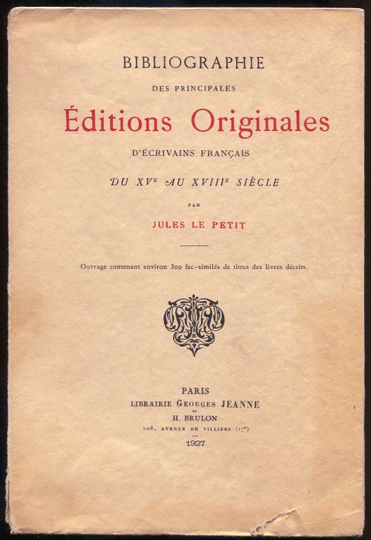 Bibliographie des principales éditions originales d’écrivains français du XVe au XVIIIe siècle.