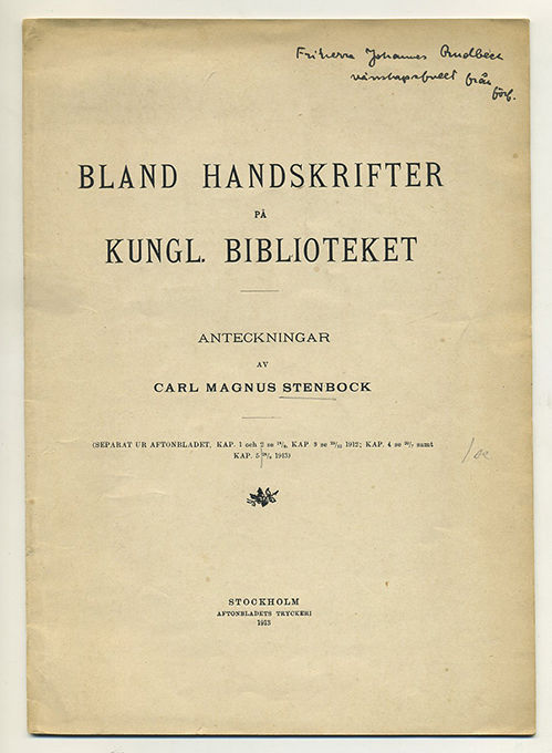 Bland handskrifter på Kungl. biblioteket. Anteckningar. (Separat ur Aftonbladet 1912-1913).