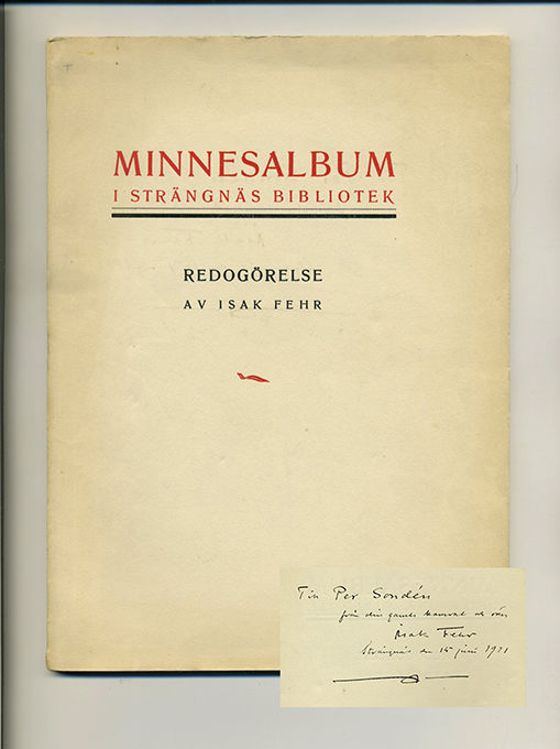 Minnesalbum i Strängnäs bibliotek. Redogörelse. Särtryck ur Bidrag till Södermanlands äldre kulturhistoria XVII.