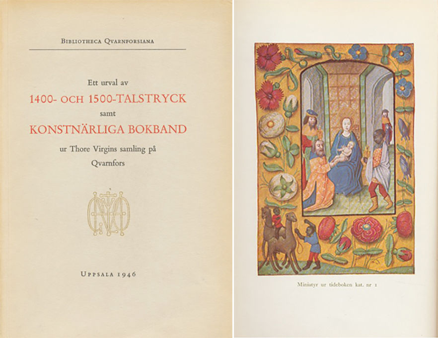 Ett urval av 1400- och 1500-talstryck samt konstnärliga bokband ur Thore Virgins samling på Qvarnfors.