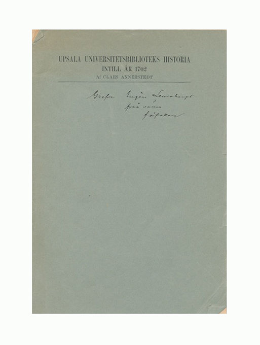 Almquist Sveriges bibliografiska litteratur 2774. K. Vitterhets historie och antiqvitets akademiens handlingar n.f. 12:2. Upplästes som inträdestal i akademien 1890, men är här kompletterat med nio bilagor med olika handskrifts- och bokförteckningar etc. Historikens slutår sammanfaller med den stora Uppsalabranden. Annerstedt och Lewenhupt var kollegor på Uppsala universitetsbibliotek.