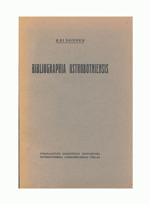 Med undertiteln ”Förteckning över litteratur behandlande Österbotten och finska lappmarken samt österbottniska personer och släkter”.