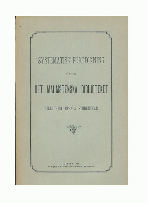 Systematisk förteckning över det malmstenska biblioteket tillhörigt Upsala studentkår.