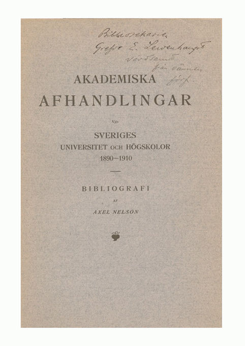 Akademiska afhandlingar vid Sveriges universitet och högskolor läsåren 1890/91-1909/10. Jämte förteckning öfver svenskars akademiska afhandlingar vid utländska universitet under samma tid. Bibliografi.