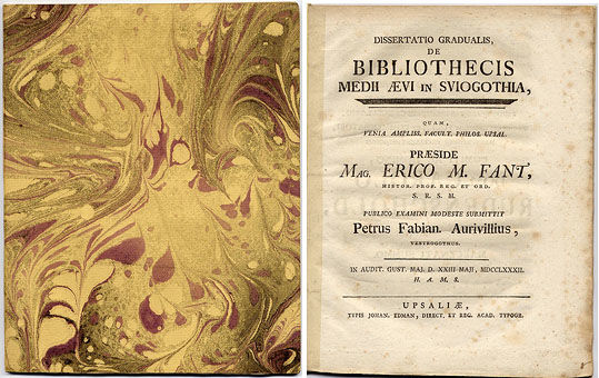 Uppsala, J. Edman, (1782). 4:o. (4),32 s. Häftad i marmorerat omslag. Ngt lagerfläckig.