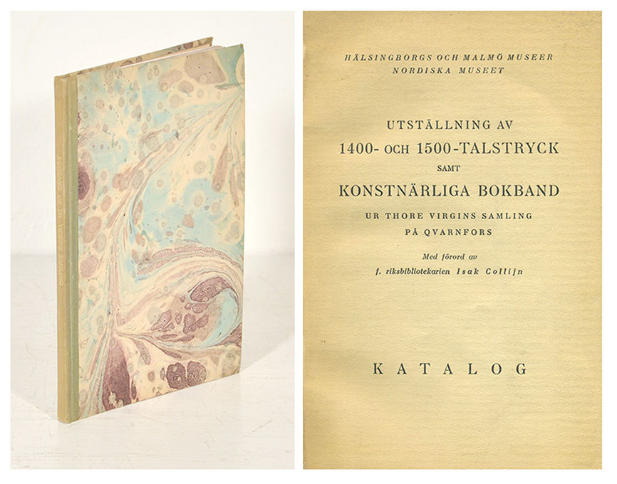 Utställning av 1400- och 1500-tals tryck samt konstnärliga bokband ur Thore Virgins samling på Qvarnfors med förord av f. riksbibliotekarien Isak Collijn. Katalog.