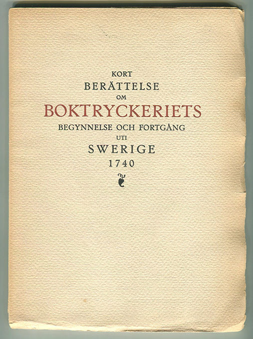 Kort berättelse om boktryckeriets begynnelse och fortgång i gemen och äfwen uti Swerige, då åhr efter Christi börd, MDCCXL, des tredje jubilæeum uti Europa firades.