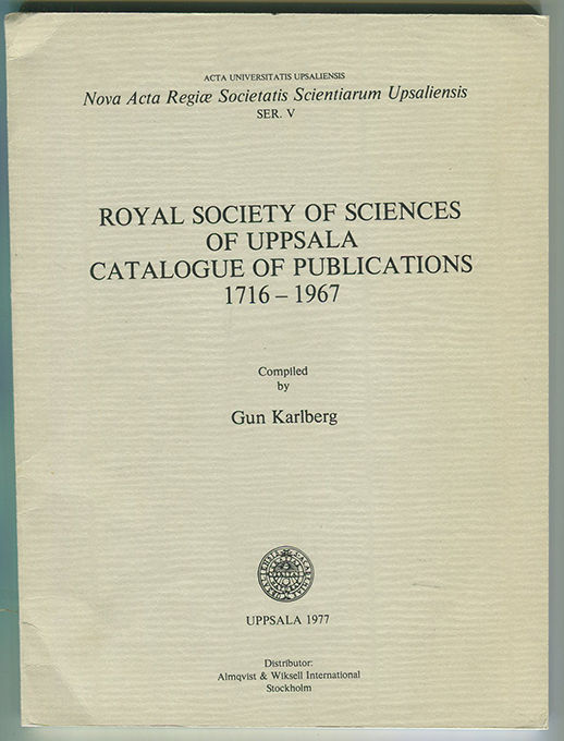 Royal Society of sciences of Uppsala catalogue of publications 1716-1967 compiled.