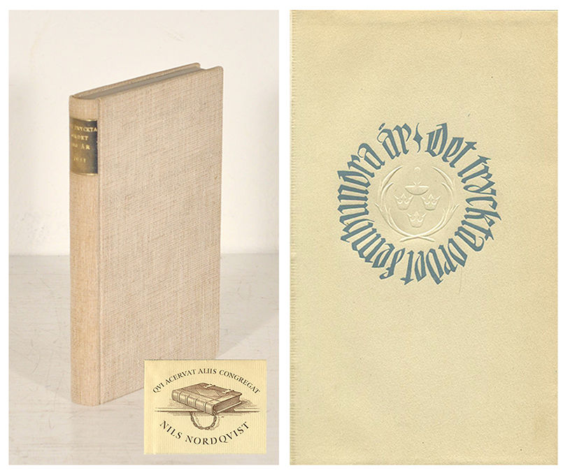 Göteborg, Sthlm och Uppsala, 1941. (210) s. Linneklbd med lite blekt grön titeletikett i skinn och grönt övre snitt (Norstedts). Omslaget medbundet. Med Nils Nordqvists exlibris och dennes löst bifogade maskinskrivna kataloglapp.