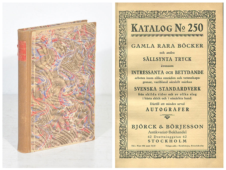Björck & Börjesson. Katalog 250. Gamla rara böcker och andra sällsynta tryck ävensom intressanta och betydande arbeten inom olika områden och vetenskapsgrenar, varibland särskilt märkas svenska standardverk från skilda tider och av olika slag i bästa skick och i utmärkta band. Därtill ett mindre urval autografer. [=omslagstitel].