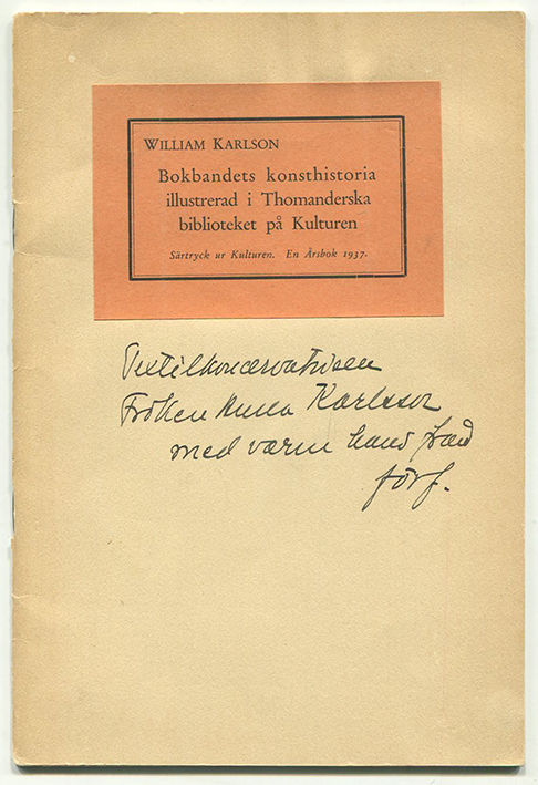 Bokbandets konsthistoria illustrerad i Thomanderska biblioteket på Kulturen. Särtryck ur Kulturen. En årsbok 1937.