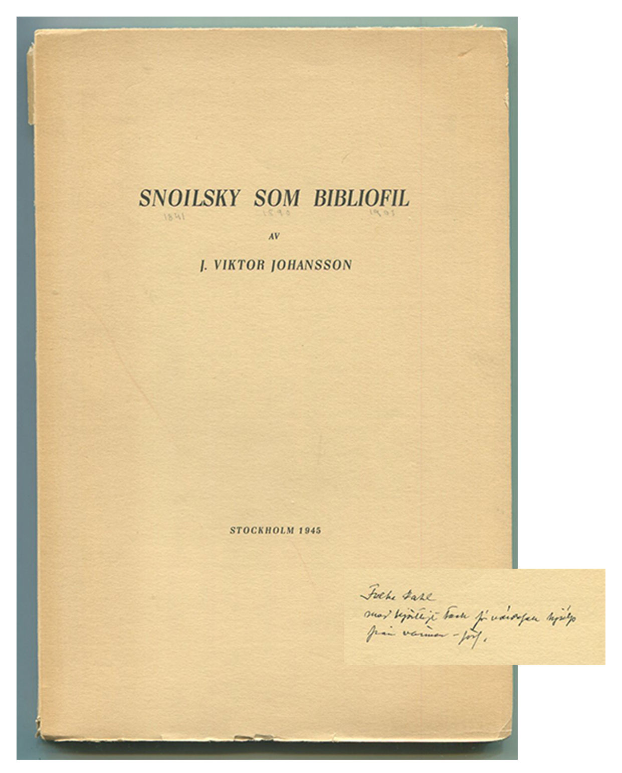 Snoilsky som bibliofil. [Ombrutet] särtryck ur Bokvandringar, uppsatser om böcker och boksamlare.