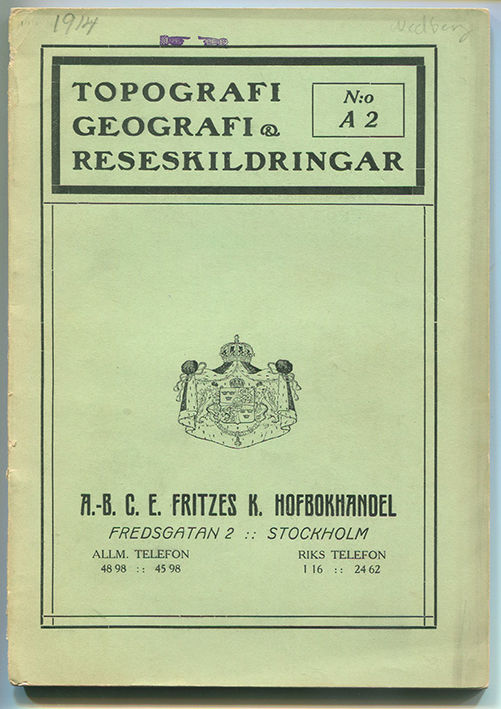 Förteckning öfver en samling böcker i topografi, geografi och reseskildringar. Bland hvilka flera mycket sällsynta och dyrbara rariteter, som försäljas genom A.-B. C. E. Fritze’s k. hofbokhandel, Stockholm.
