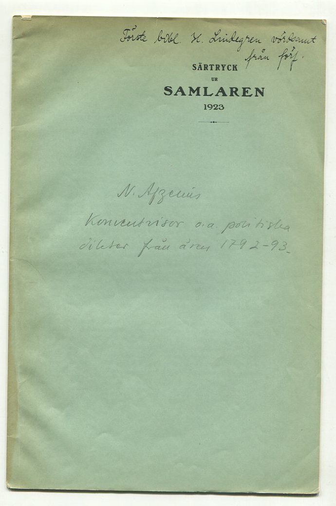 Konventvisor och andra politiska dikter från revolutionsåren 1792-1793. Särtryck ur Samlaren 1923.