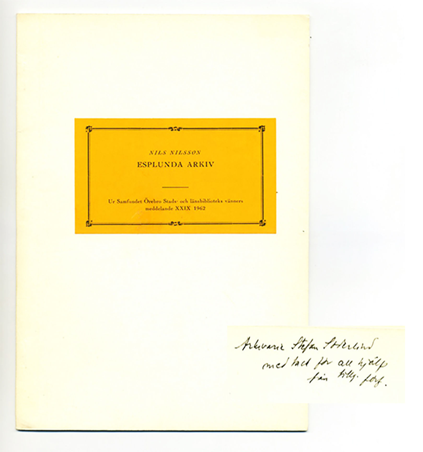 Esplunda arkiv. En orientering. Särtryck ur Samfundet Örebro stads- och länsbiblioteks vänners meddelande XXIX, 1962.
