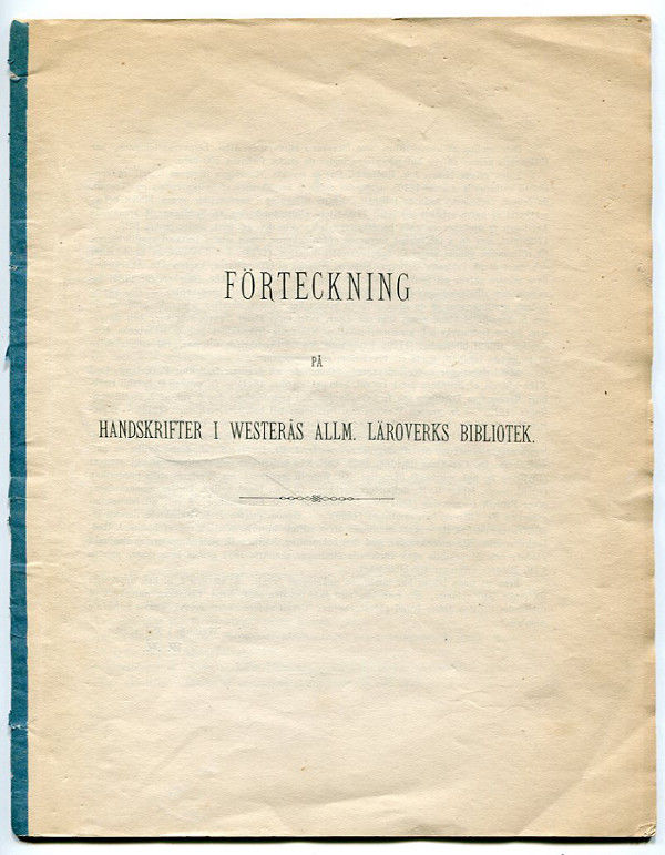 Förteckning på handskrifter i Westerås allm. läroverks bibliotek. [Särtryck ur ”Redogörelse för h. allm. lärov. i Vesterås 1881-82.”.